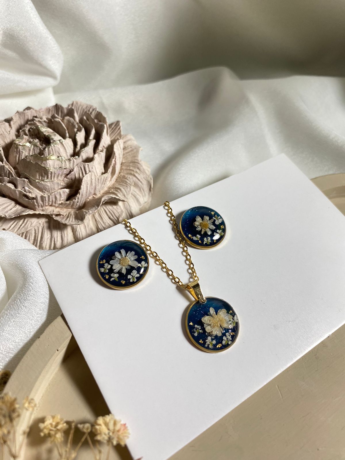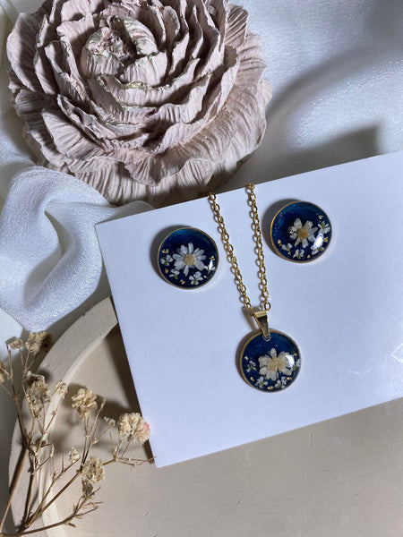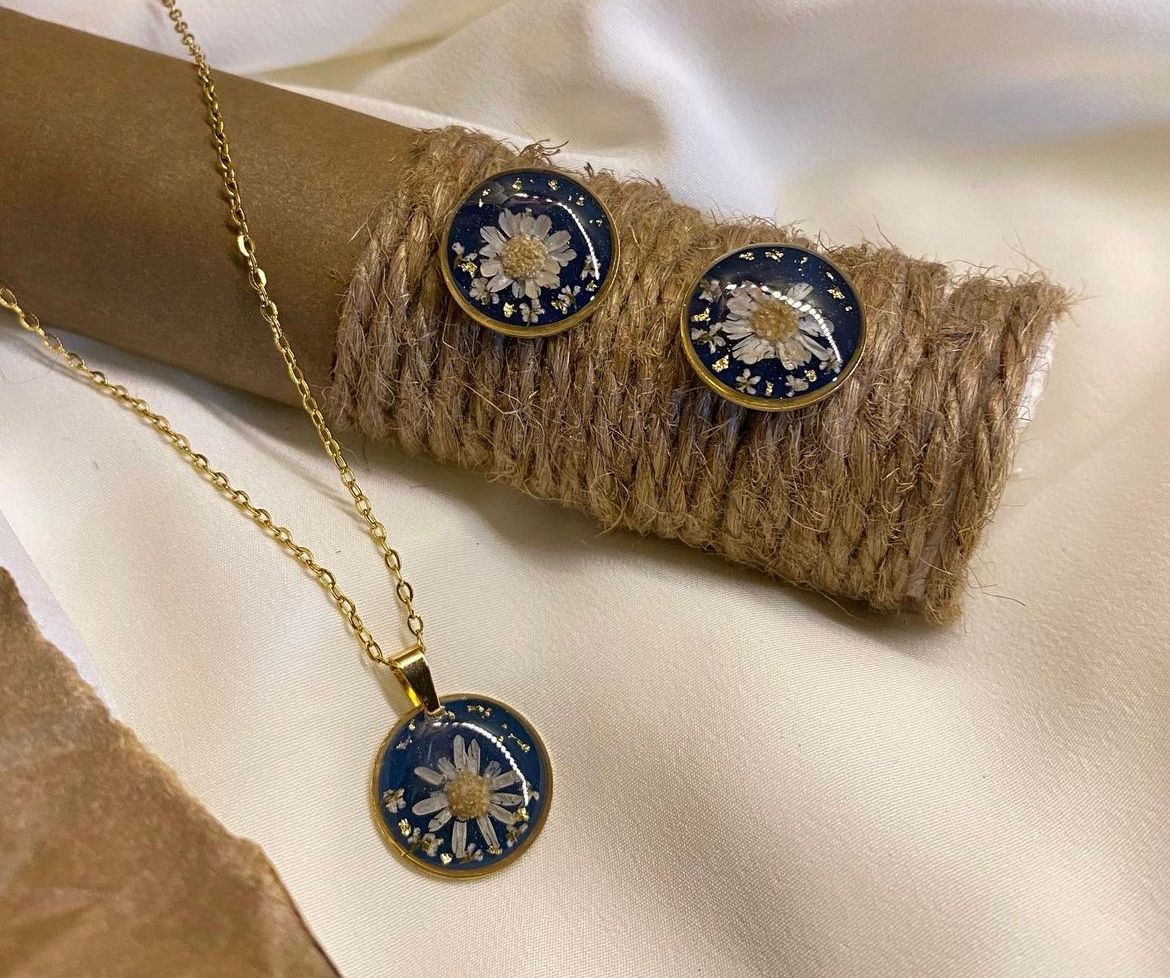 Introducing our mesmerizing Sky Whispers Set! Crafted with real flowers and meticulously encased in resin art to create a stunning piece of jewelry. Exquisite beauty meets nature's elegance!