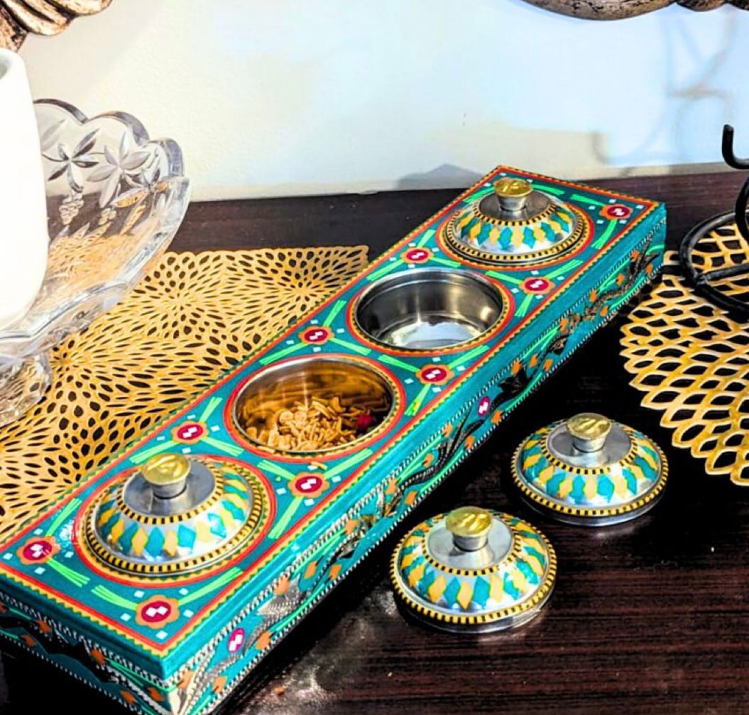 Teal compartment masala box