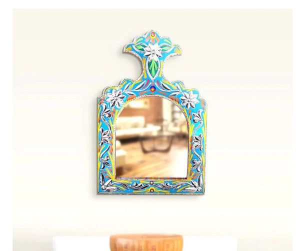 Introducing our exquisite Chamakpatti Mirror, a stunning piece inspired by the vibrant and colorful world of truck art. Handcrafted with intricate detailing, this mirror is not just a functional accessory but also a beautiful work of art that adds a touch of cultural charm to any space.