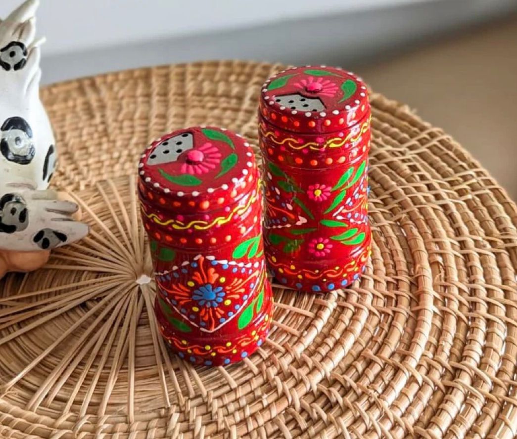 Introducing our Red Hand-Painted Salt and Pepper Set, a testament to artistry and functionality at your dining table..