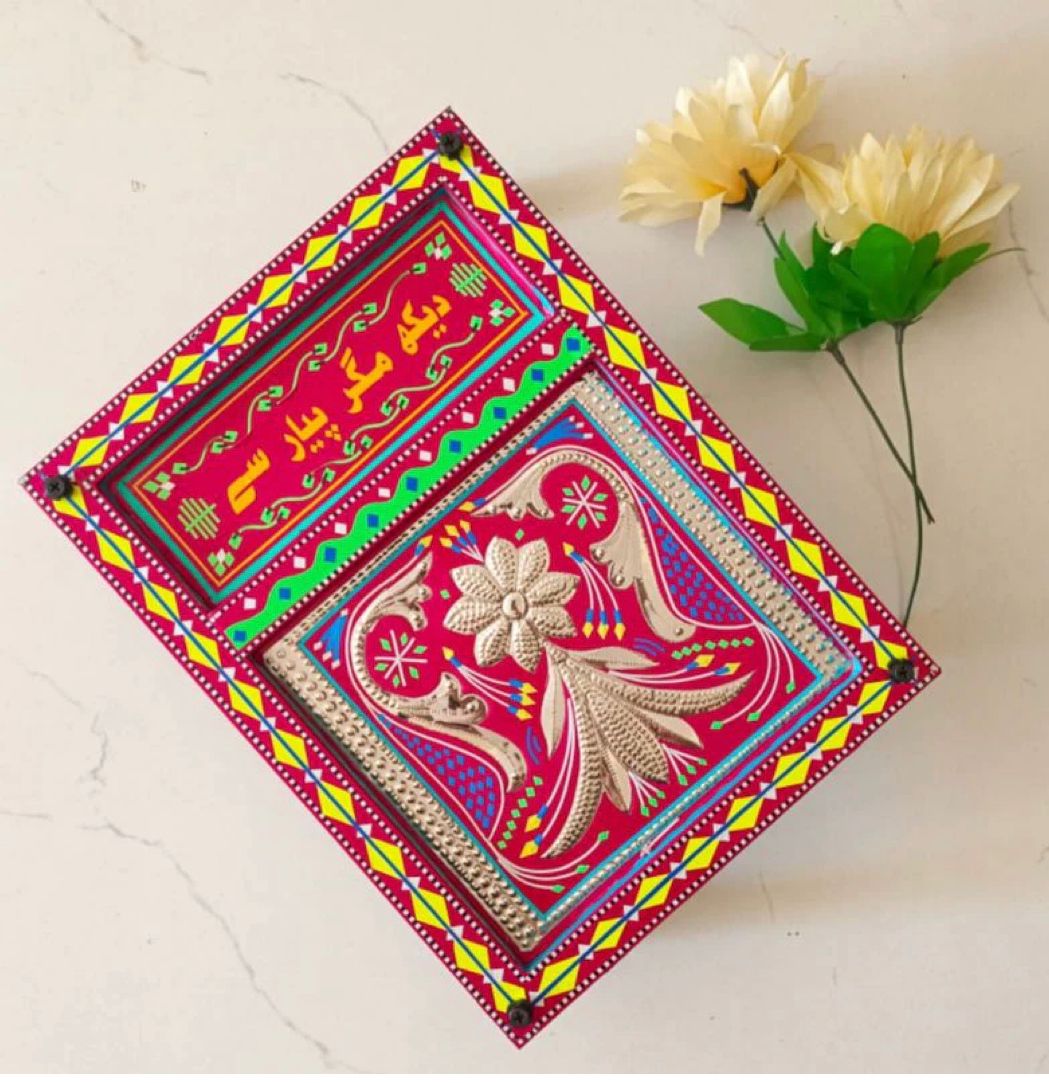 The "Dekh Magar Pyaar Se Charpai" stands out with its vibrant and intricate design, embodying the rich cultural heritage and artistic craftsmanship. The phrase "Dekh Magar Pyaar Se" adds a whimsical touch, making this charpai not only a functional piece but also a delightful conversation starter. Its detailed patterns and vibrant colors make it a focal point in any setting, bringing warmth and personality to your space.