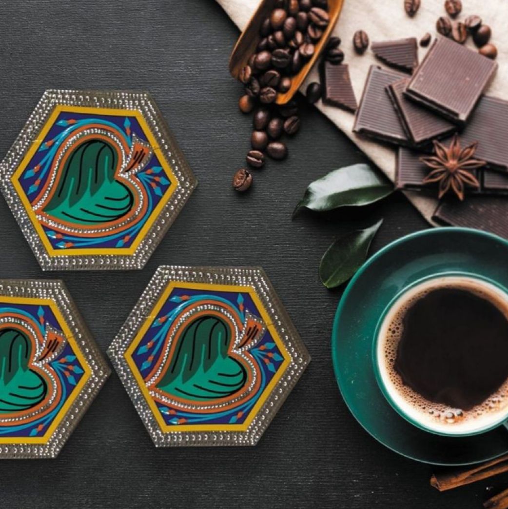Introducing our Green Leaf Chamakpatti Coasters! Crafted with intricate details, these eco-friendly coasters are perfect for adding a touch of nature to your home decor. Protect your surfaces in style while making a sustainable choice.